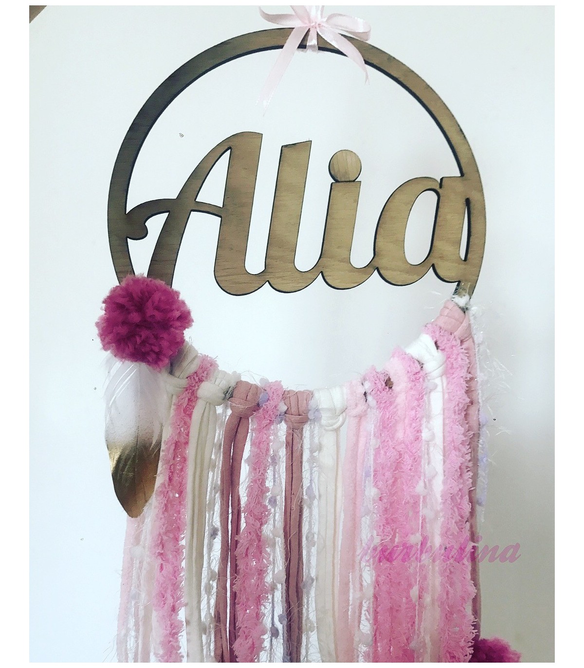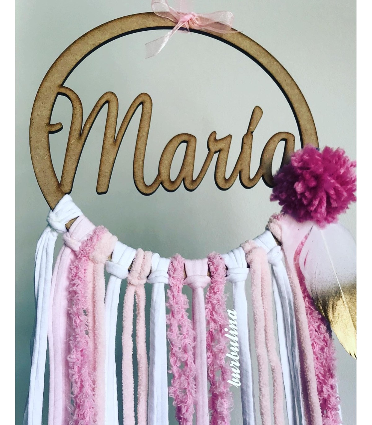 Aro elaborado en madera, se puede personalizar con nombre o con una palabra.