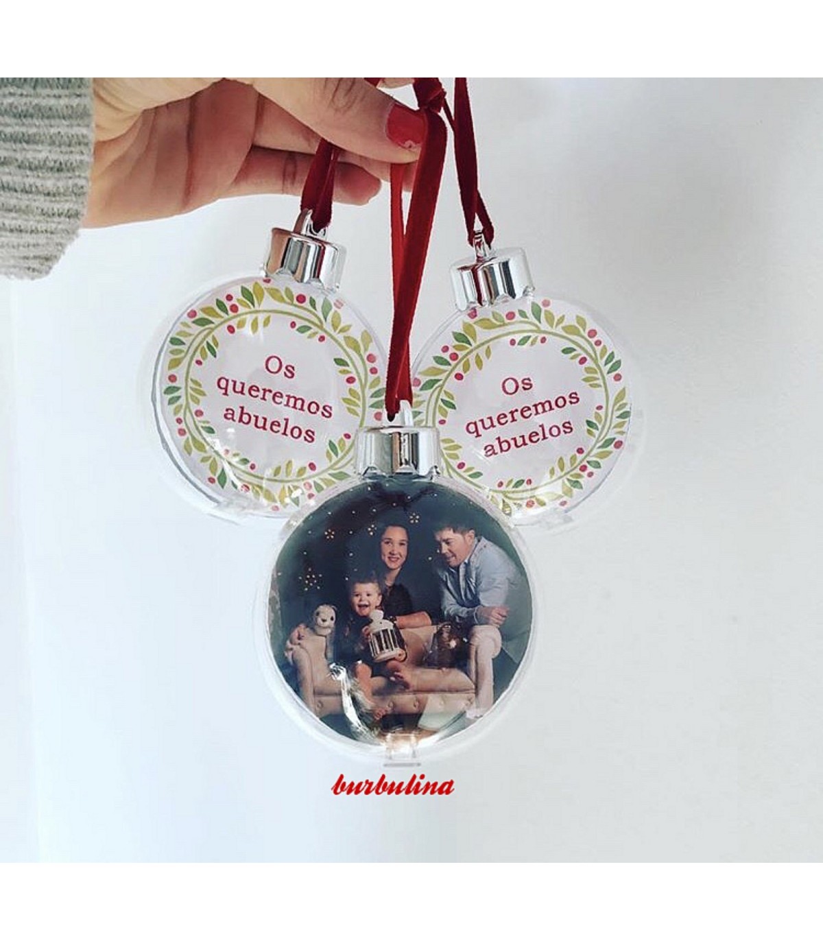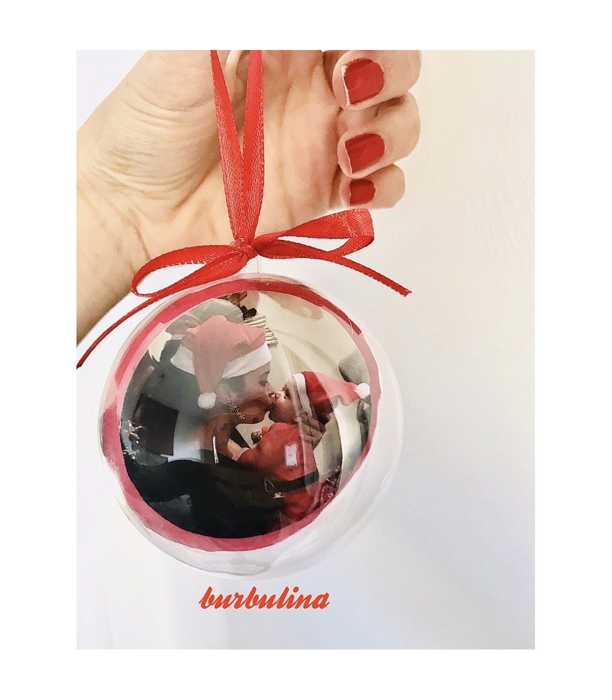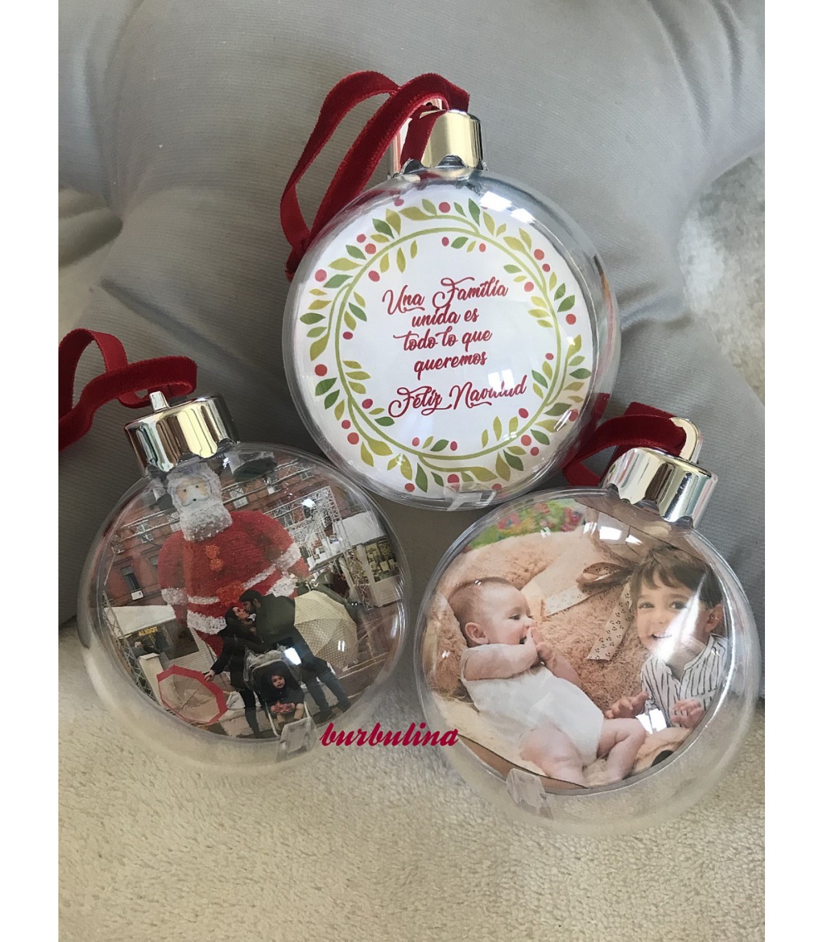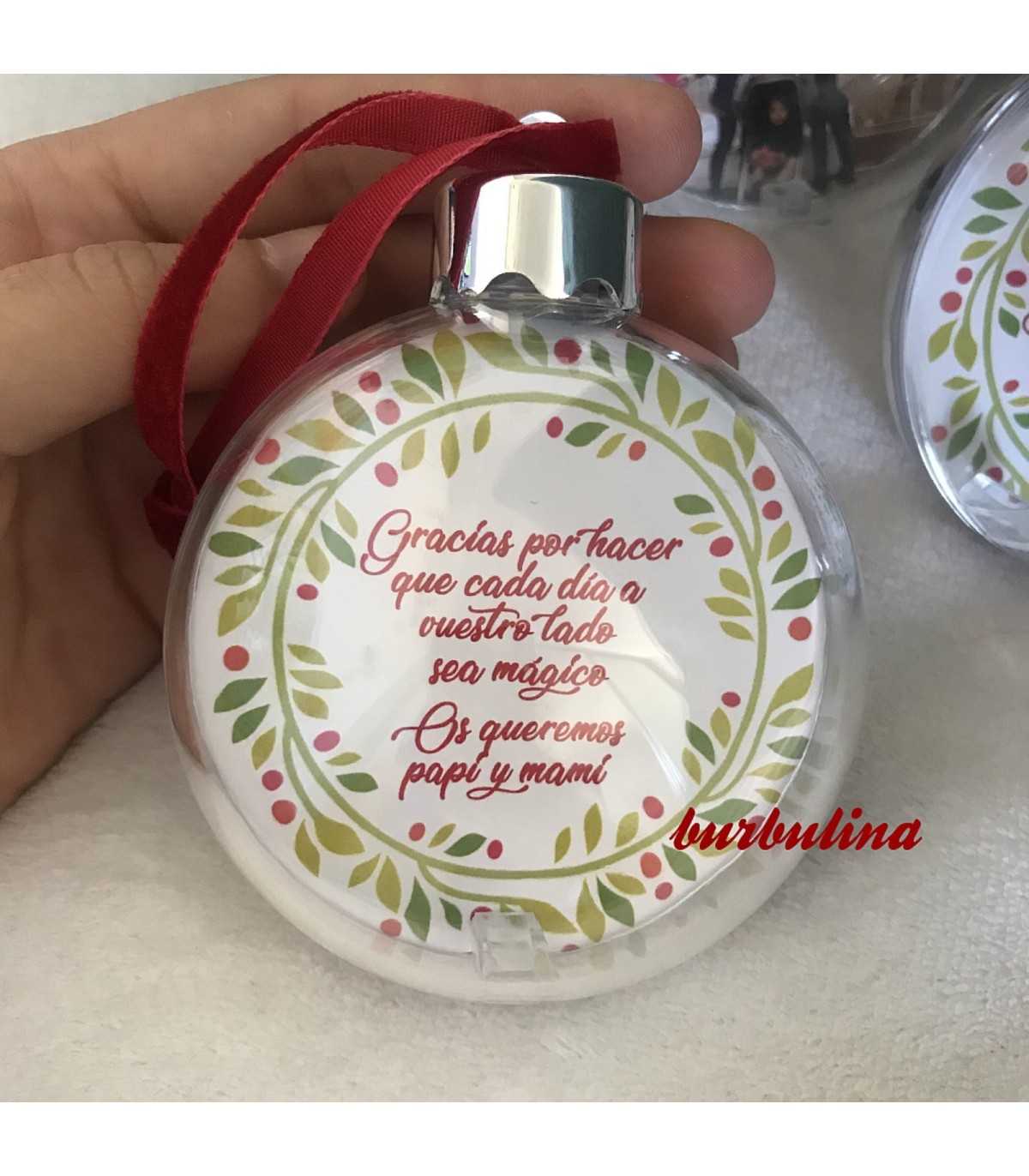 Preciosa bola para árbol de navidad con foto y mensaje con la que sorprenderás a tus familiares y amigos. Un regalo que perdurará en el tiempo y quedará para el recuerdo durante años