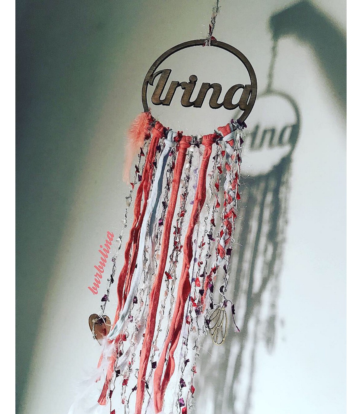 Se suele colgar encima de la cama o bien cerca de la puerta de entrada a casa Todos van adornados con corazones o hojas de madera, plumas, cintas o puntillas, pero hay que tener en cuenta que cada diseño es único y por tanto cada atrapasueños es exclusivo siendo todos diferentes