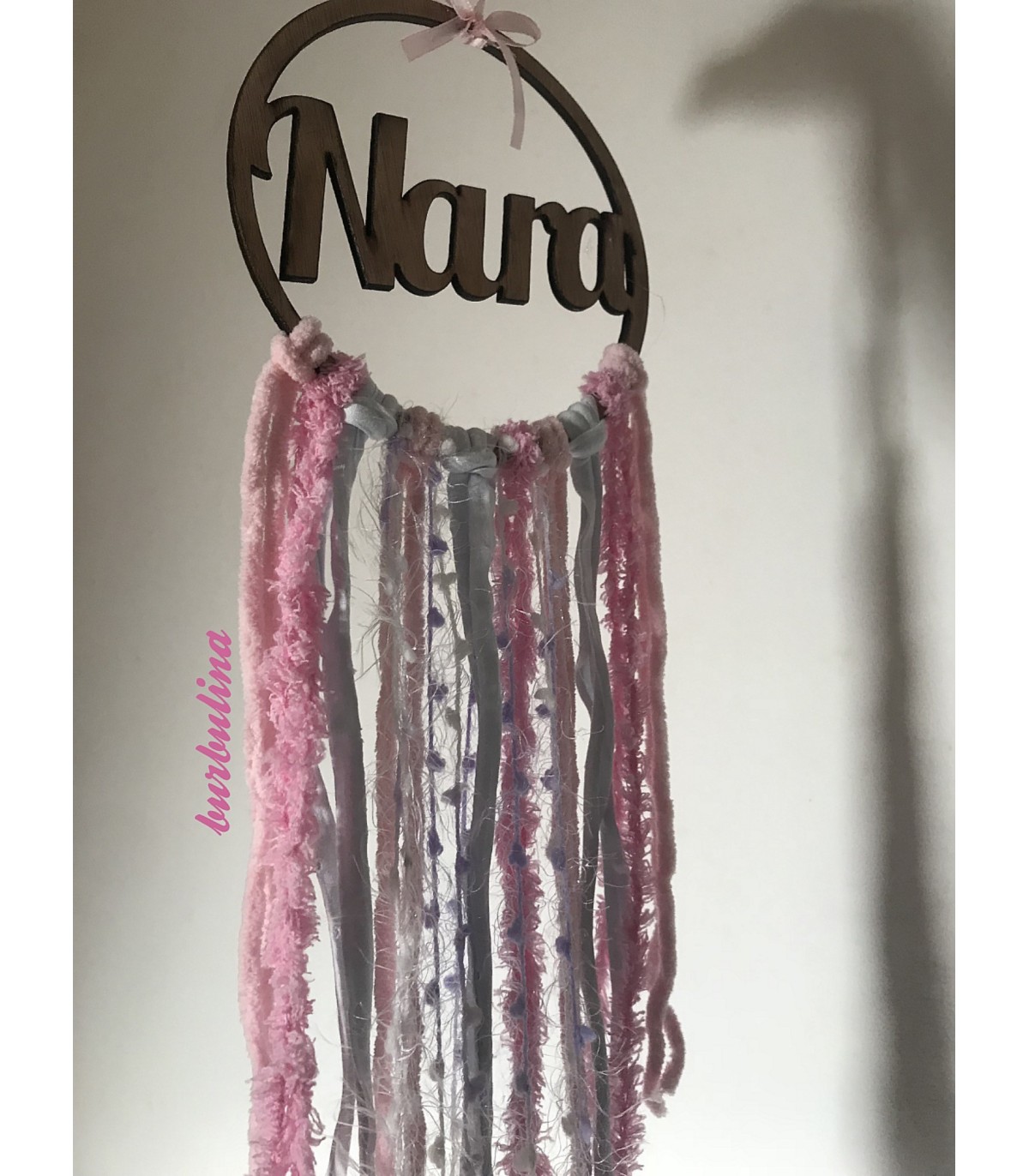 Aro elaborado en madera, se puede personalizar con nombre o con una palabra.