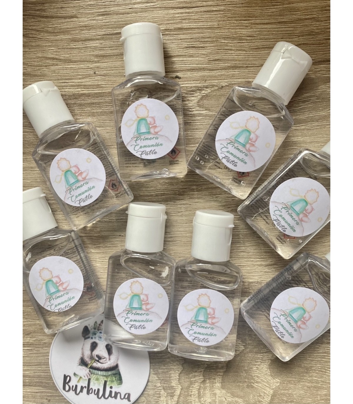 Preciosas botellitas de gel hidroalcólico personalizado perfecto para detalle de comunión