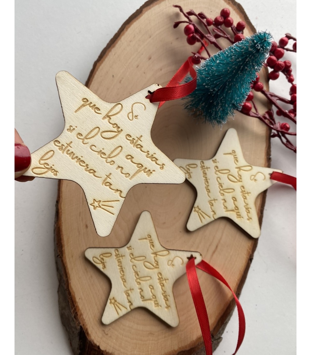 Adorno tipo bola para colgar en árbol de navidad o para decorar cualquier rincón. Con frase personalizada “se que hoy estarías aquí si el cielo no estuviera tan lejos”