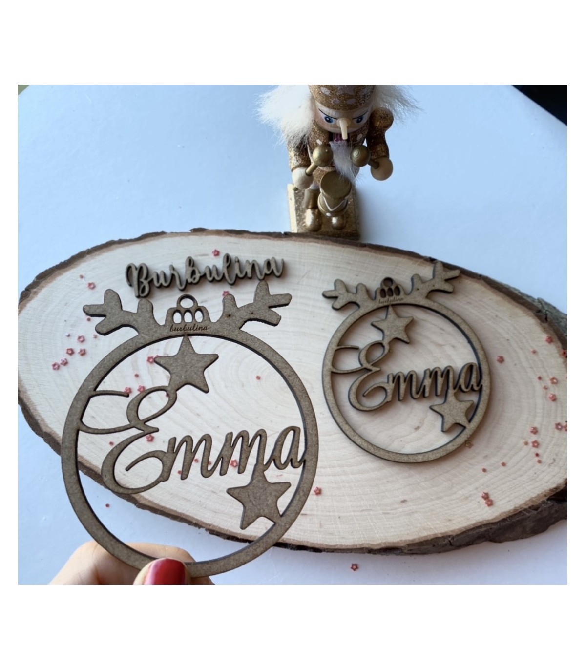 PACK AHORRO de las Bolas navidad con nombre color madera natural. El complemento personalizado perfecto para el árbol de navidad. El diseño de reno es perfecto para los más peques de la casa.