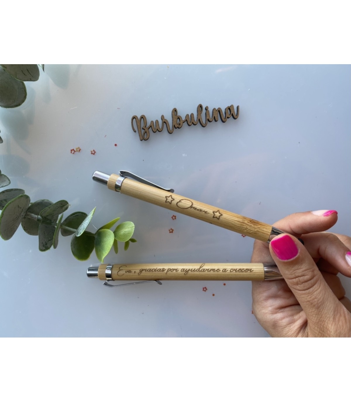 Va grabado con laser a dos caras. Una con la frase que quieras y el nombre del profesor, y la otra cob el nombre o nombres del alumno.  Máximo 5 nombres