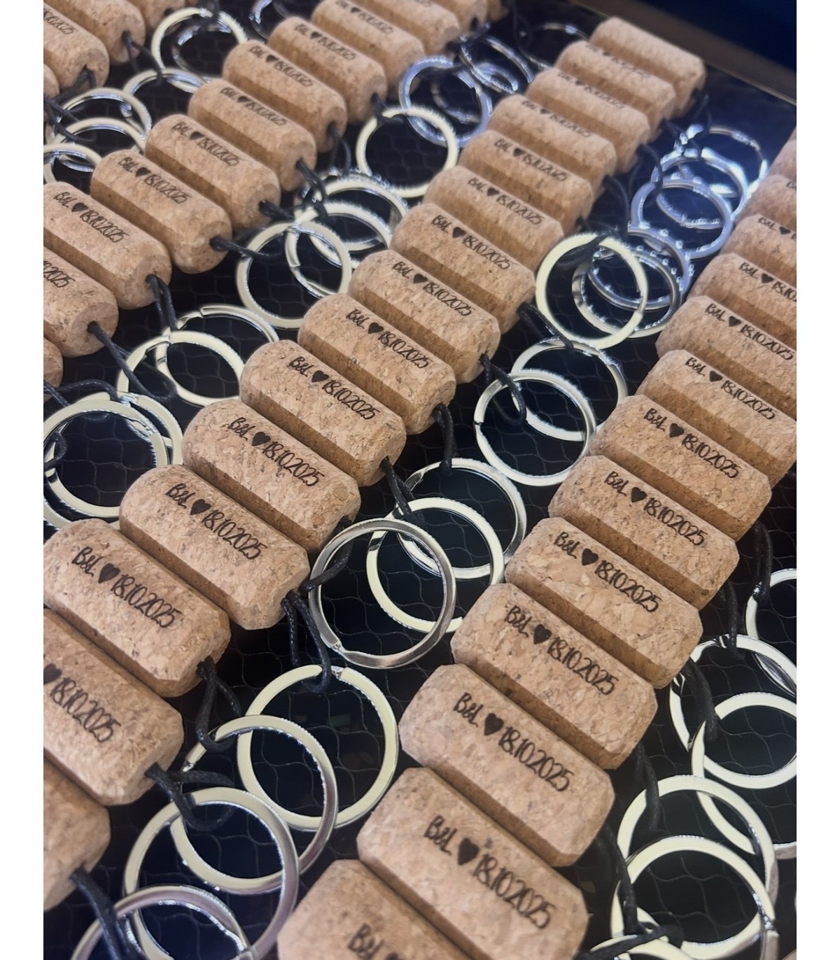 Se puede grabar a una cara (con el nombre del invitado) o a dos caras (por una nombre invitado y por la otra iniciales o nombres de los novios)