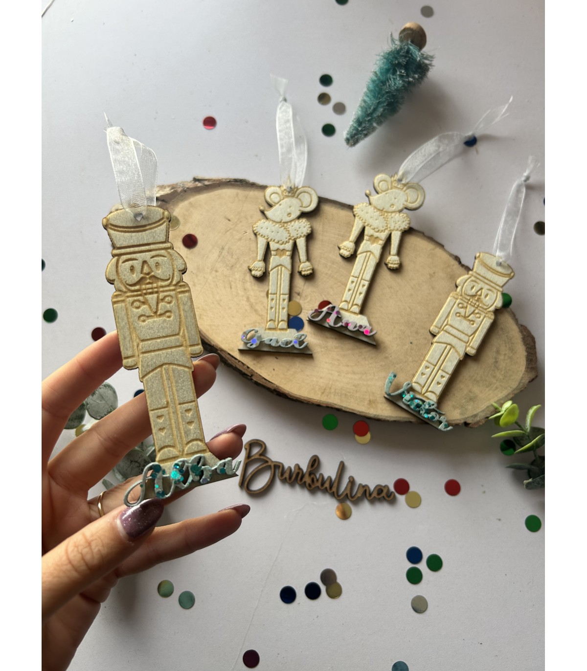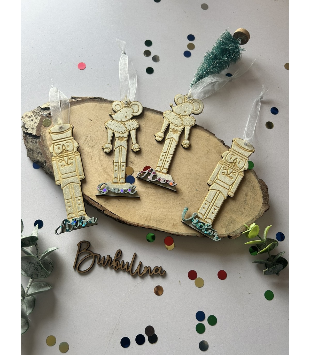 Cascanueces personalizado para árbol de navidad. Elaborado en madera y grabado a laser. Con nombre en relieve pintado a mano.
