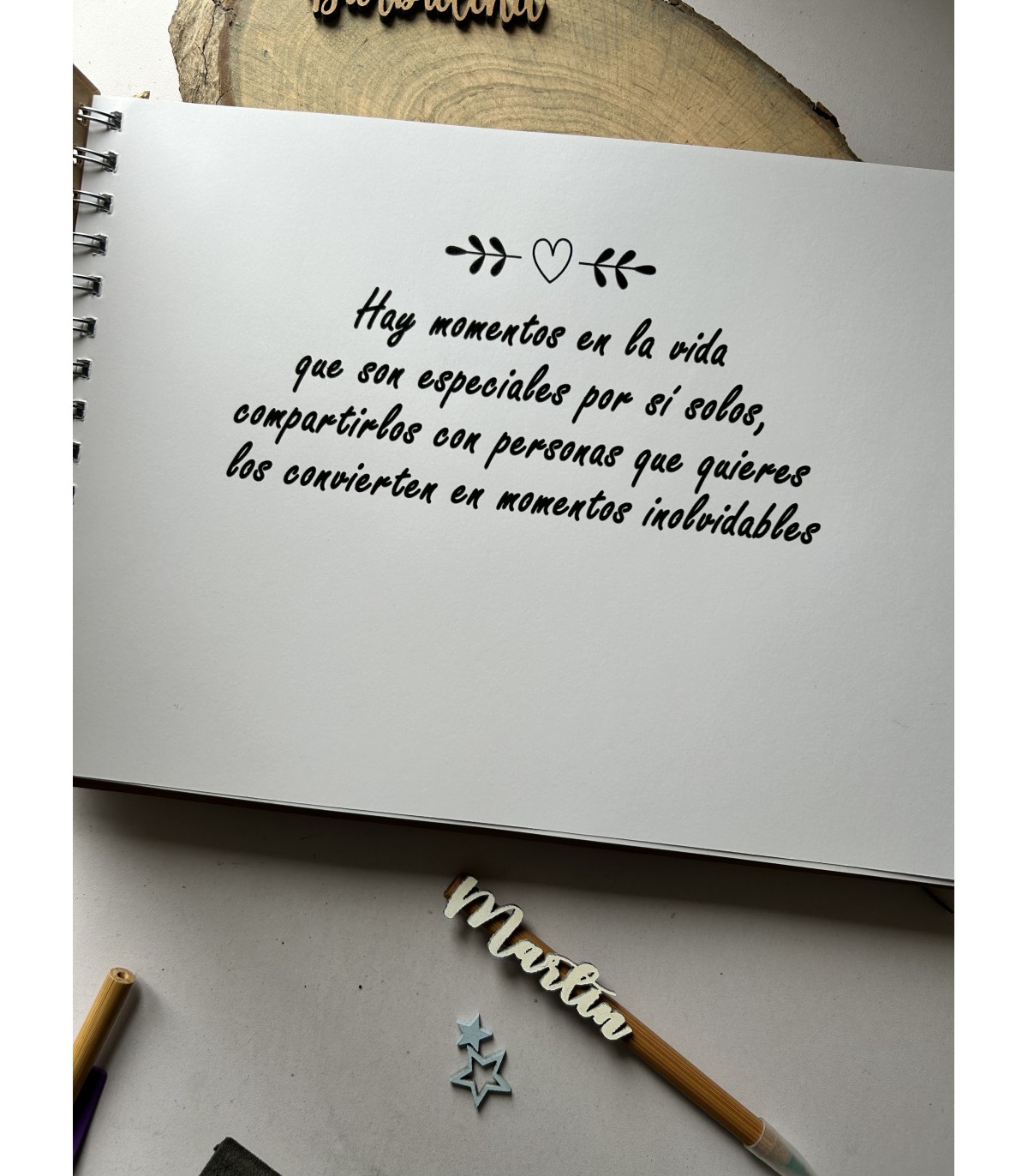 30 páginas. Primera con dedicatoria y el resto en blanco brillo.