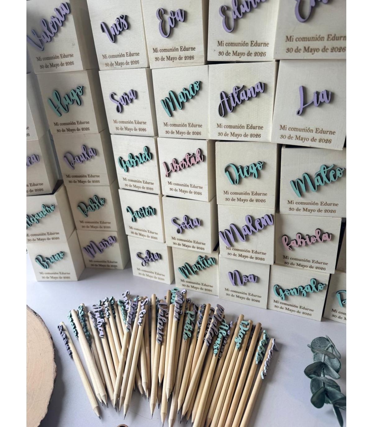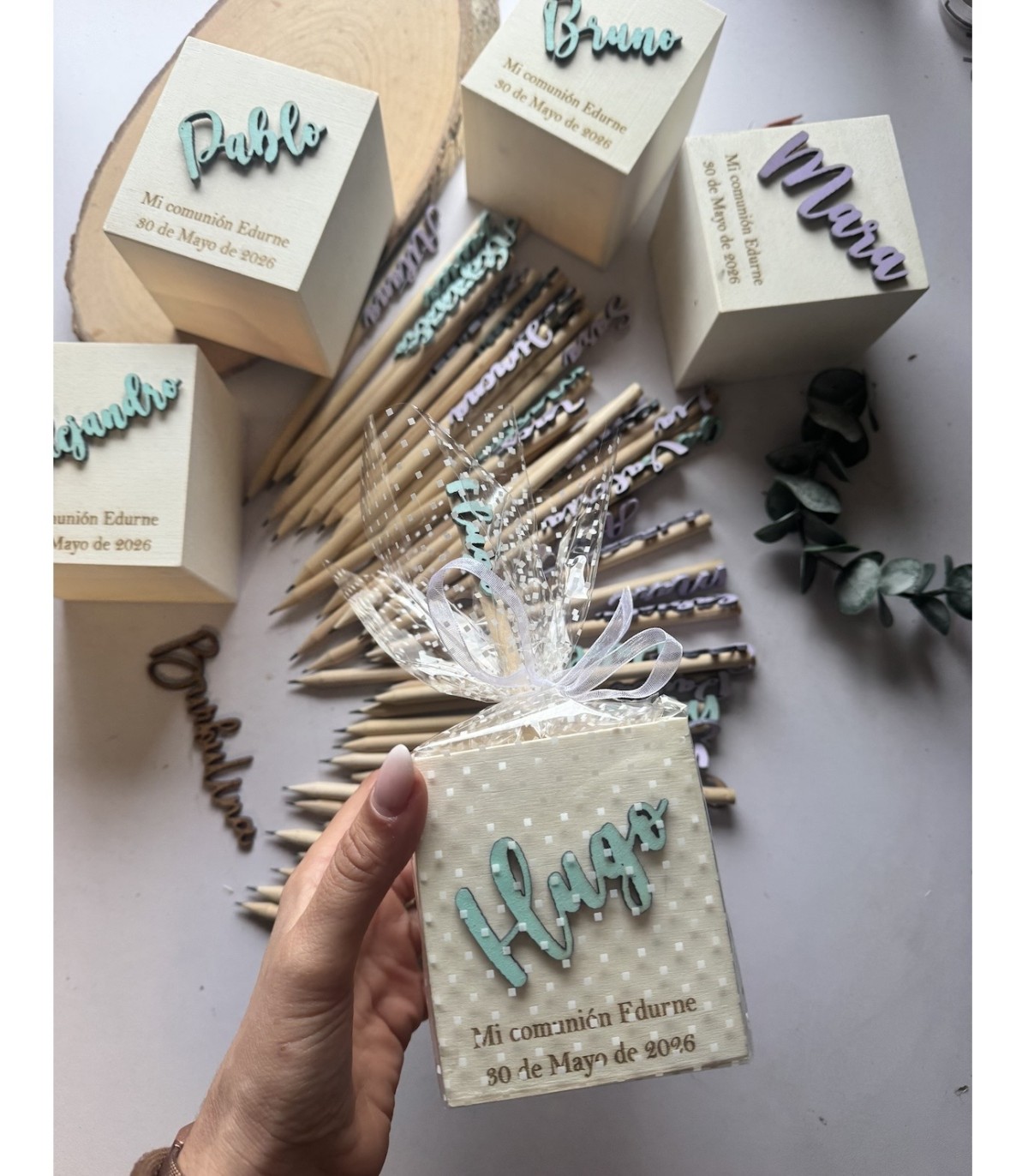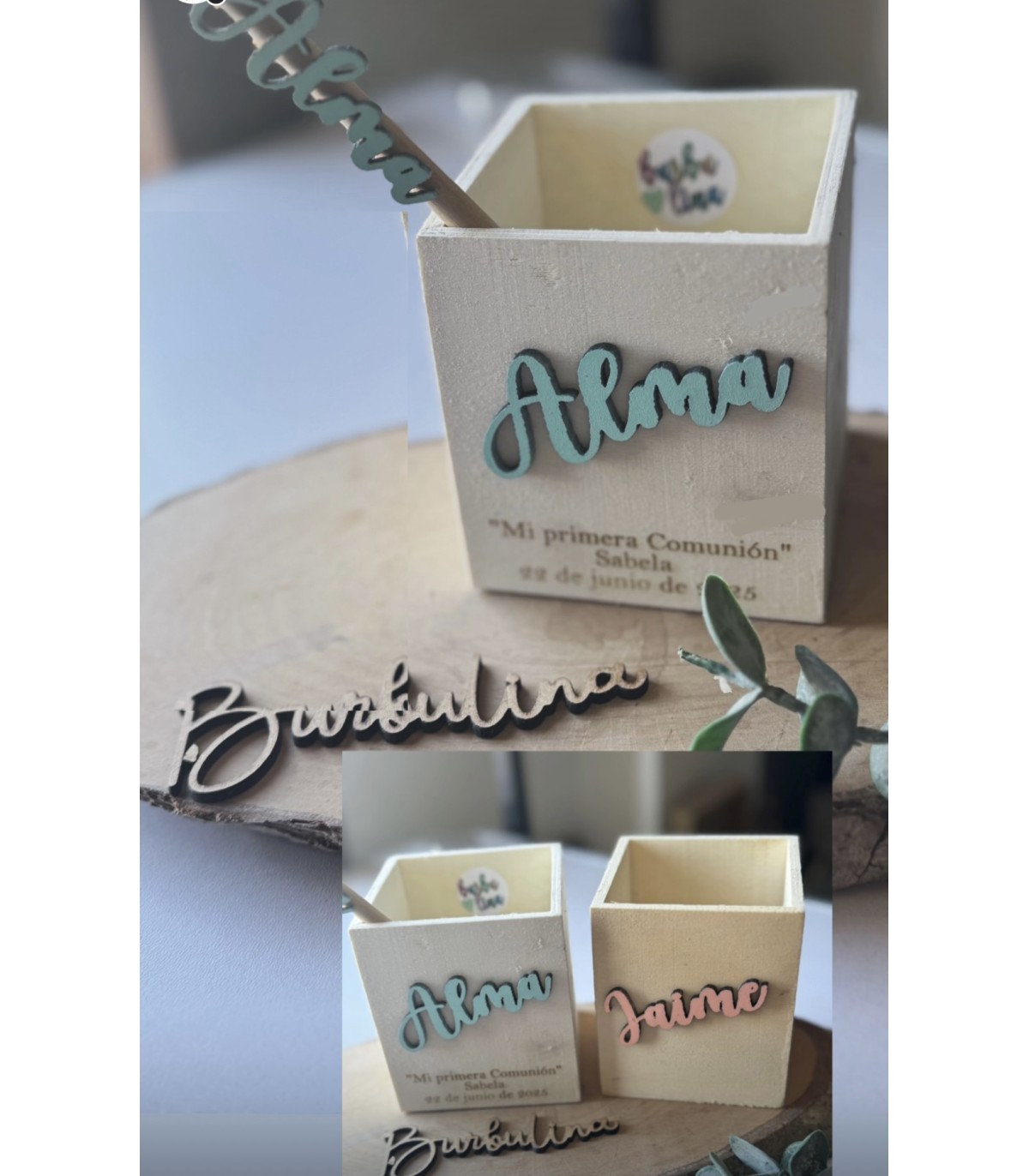 Lapicero con lápiz decorado con nombre de madera en el color que quieras