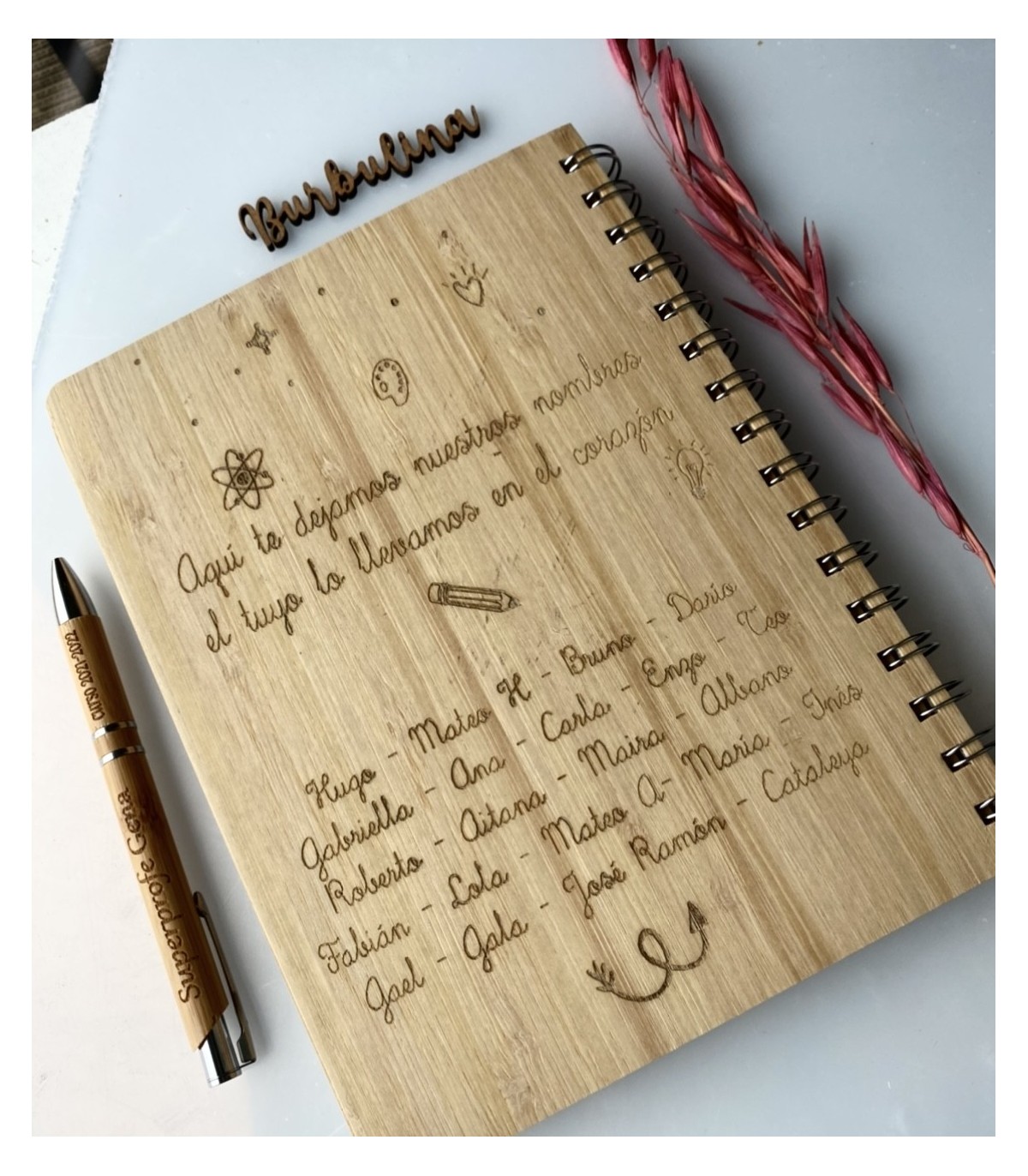 Preciosa libreta de  personalizada para profes. Tiene un tamaño a5. El texto puede modificarse añadiendo varios nombres en la parte inferior
